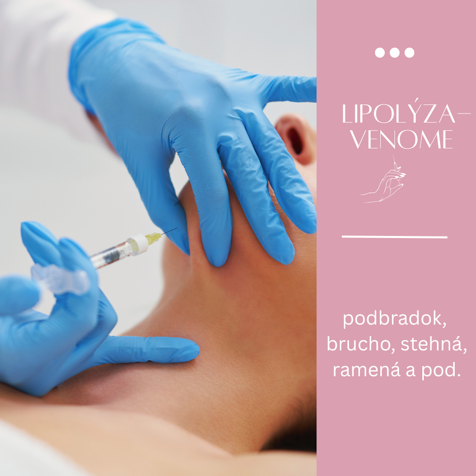 - Lipolýza s Venome -  odstránenie tuku v oblasti podbradku 120 €,  telo - 1 lokalita cca 200 €