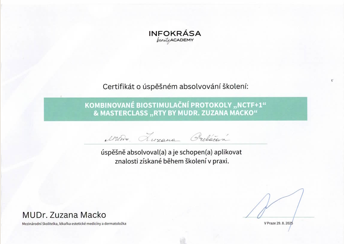 - Botulotoxín - vrásky hnevu, čelo, okolie očí