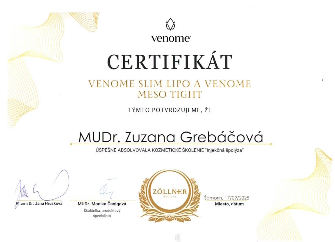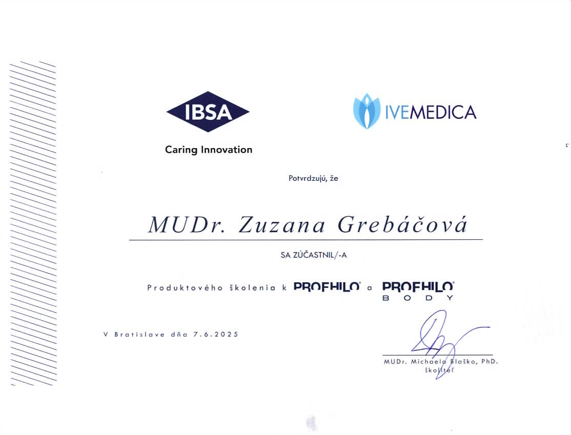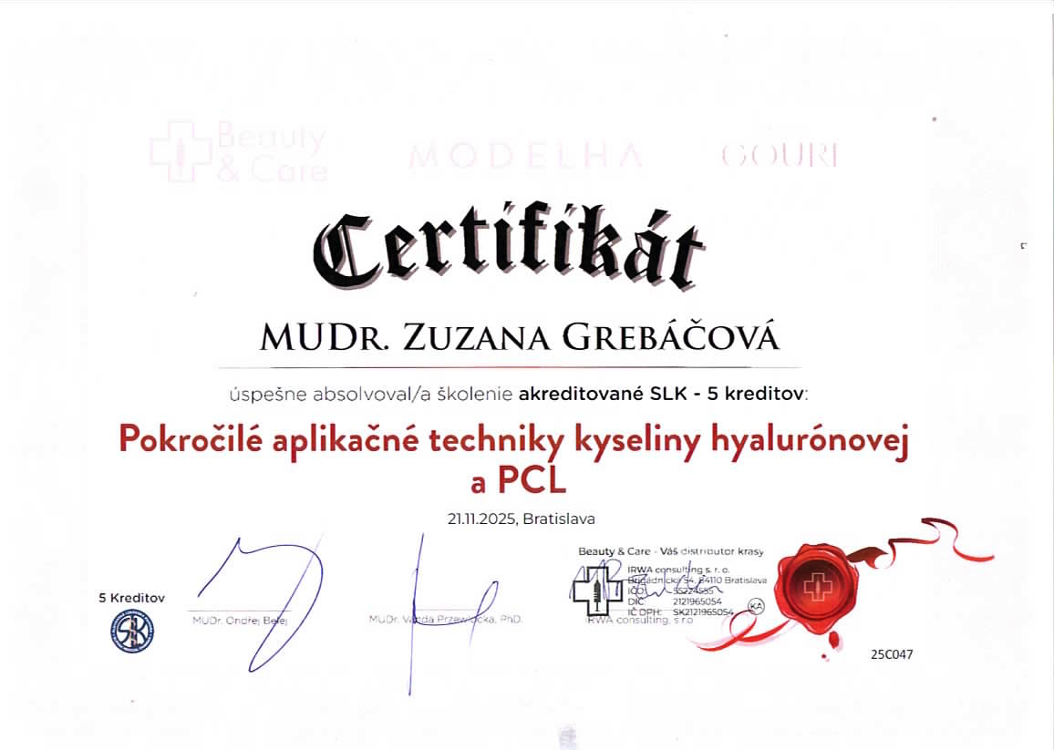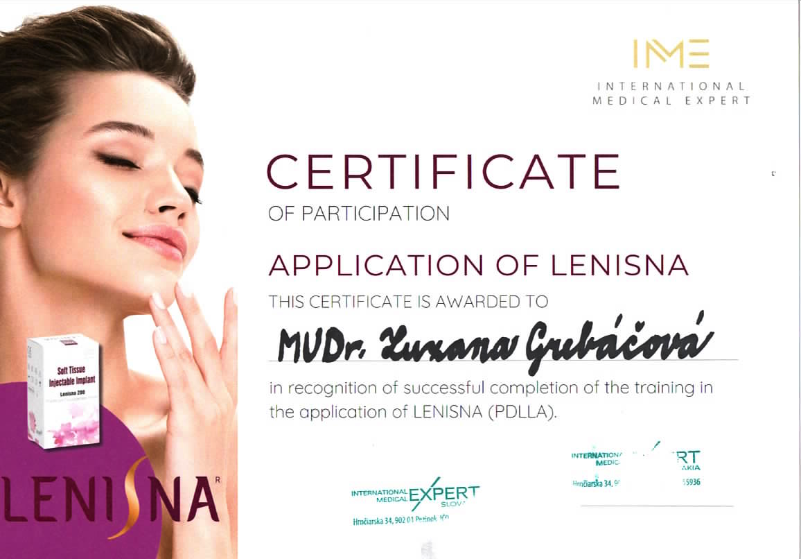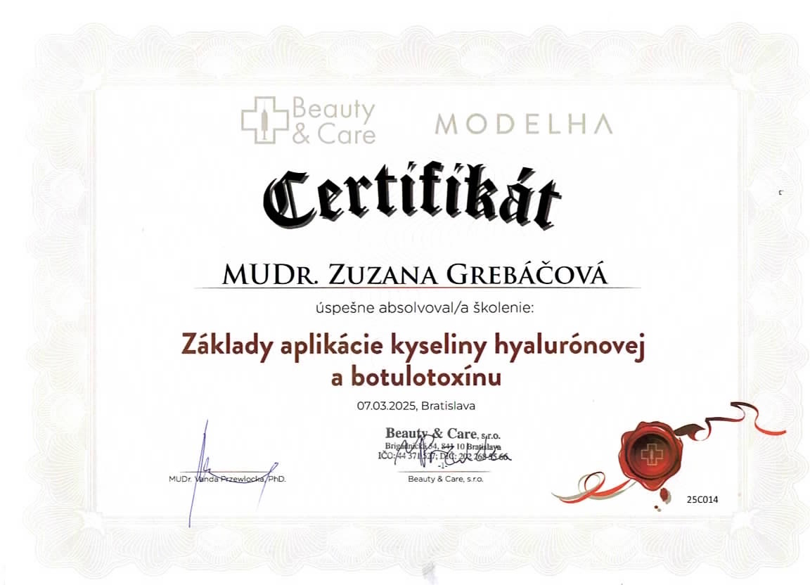 - certifikovaný lekár estetickej medicíny
