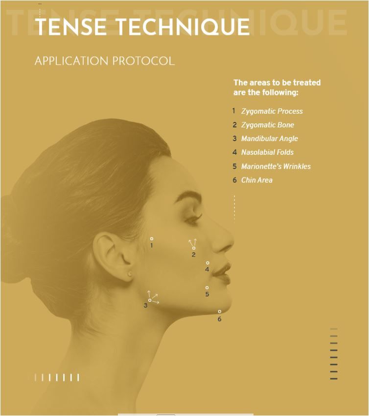 Aplikuje sa bodovo pomocou ihly alebo vektorovite pomocou špeciálnej tupej kanyly, ktorá minimalizuje bolestivosť a poranenie tkanív počas celého výkonu. Pred aplikáciou sa vykonáva lokálna anestézia Lidocainom.